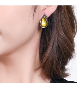 Zilverkleurige oorclips met gele inleg en stras steentjes De lengte van deze oorclip is 7.5 cm. Deze klem oorbellen zijn geschikt voor oren zonder gaatjes. De clip oorbellen zijn nikkelvrij. Voorzien van rubbertjes voor het comfortabel dragen van deze oorclips.