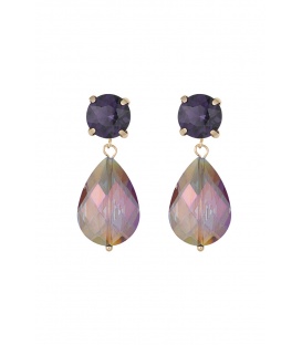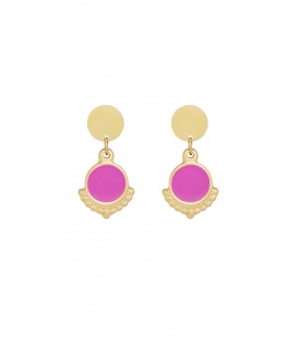 Goudkleurige oorhangers met een roze oog De lengte van deze oorbel is circa 3 cm. Voor oren met gaatjes. De oorbellen zijn nikkelvrij.
