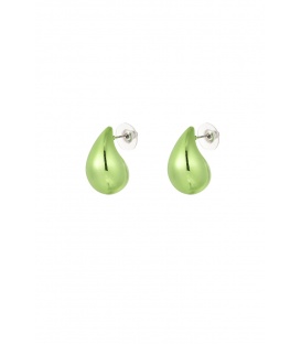 Groen gekleurde ovale oorhangers met een goudkleurig oor stukje. De lengte van deze oorbel is circa 4.60 cm. Voor oren met gaatjes. De oorbellen zijn nikkelvrij. De oorbellen zijn voorzien van stoppertjes.