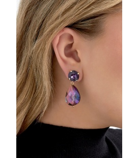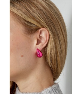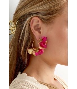 Fuchsia roze oorhangers met een bloem motief en stras steentjes. De lengte van deze oorbel is circa 4 cm. Voor oren met gaatjes. De oorbellen zijn nikkelvrij.