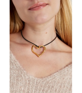 Goudkleurige halsketting met als hanger een hart. De lengte van de halsketting is circa 60 cm. De ketting heeft een verlengkettinkje van 5 cm