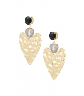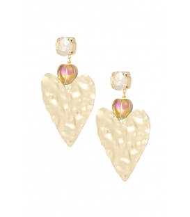 Goudkleurige harten oorhangers met een bewerkte rand. De lengte van deze oorbel is circa 4.60 cm. Voor oren met gaatjes. De oorbellen zijn nikkelvrij. De oorbellen zijn voorzien van stoppertjes.