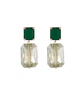 Goudkleurige oorhangers met een groen oog. De lengte van deze oorbel is circa 3 cm. Voor oren met gaatjes. De oorbellen zijn nikkelvrij.