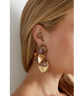 Goudkleurige oorringen met schelpjes De lengte van deze oorbel is circa 6 cm. Voor oren met gaatjes. De oorbellen zijn nikkelvrij. De oorbellen zijn voorzien van stoppertjes.