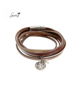 De armband is gemaakt van imitatie leder. De armband is van het merk Sweet7.