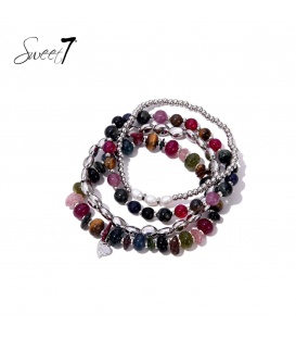 Gekleurde 3 strengs natuurstenen armband met bedels. De lengte van de armband is circa 18 cm. De armband is nikkelvrij.