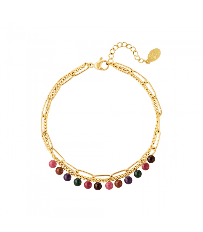 Goudkleurige dubbele armband met kleurrijke natuurstenen.