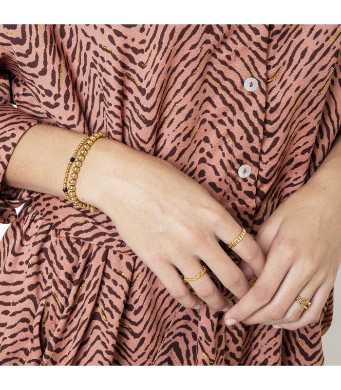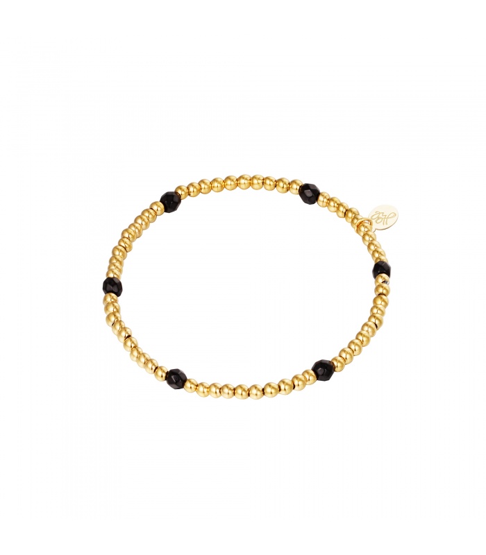 Schattig armbandje met gouden en enkele zwarte kraaltjes. Dit armbandje is de perfecte musthave en past bij elke look! Het armbandje is gemaakt van Stainless Steel en steentjes. Het armbandje heeft een afmeting van 17 cm en is dankzij het elastiek perfect te dragen.