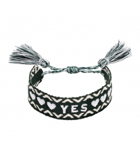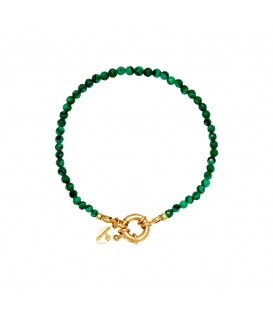 Groene armband met satijnen koord en goudkleurige bedel. De lengte van de armband is 16 cm. De armband is nikkelvrij.
