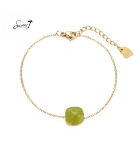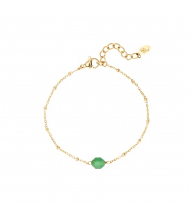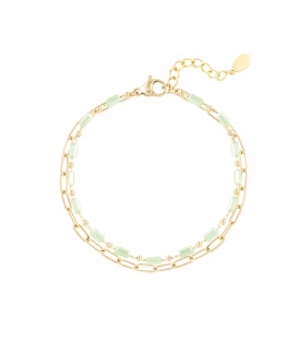 Mint groene armband met natuurstenen kralen. De lengte van de armband is 16 cm + een verlengkettinkje 3 cm. De armbanden zijn nikkelvrij.