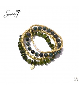 De armband is gemaakt van stainless steel en kralen. De armband is 18 cm. De armband is van het merk Sweet7.