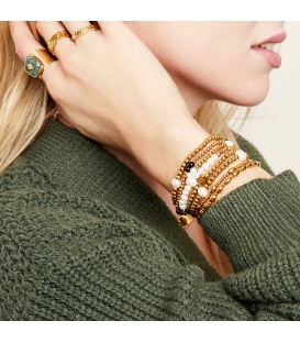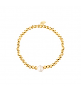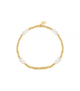 Goudkleurige armband met witte gecultiveerde zoetwaterparels. De lengte van de armband is 18 cm. De armbanden zijn nikkelvrij.
