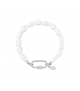 Armband met zoetwaterparels en goudkleurige ovale sluiting. De armband heeft een lengte van 17.50 cm. Nikkelvrij.