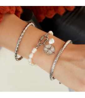 De armband heeft een afmeting van 18,10cm. De armband is gemaakt van stainless steel en parels.
