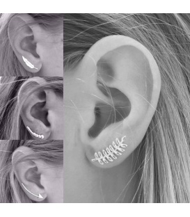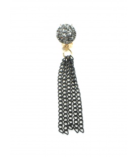 Zilverkleurige langwerpige oorclips met 5 zwarte jasseron strengen