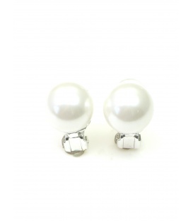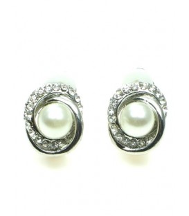 Zilverkleurige clipoorbellen met strassrand en halve kunstparel