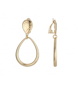 Goudkleurige oorclips met gladde ovale hanger en een bewerkt oorstukje De lengte van deze oorclip is 5 cm. Deze klem oorbellen zijn geschikt voor oren zonder gaatjes.