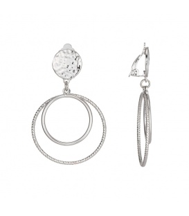 Zilverkleurige oorclips met 1 bewerkte cirkel en 1 gladde cirkel De lengte van deze oorclip is 5.5 cm. Deze klem oorbellen zijn geschikt voor oren zonder gaatjes.