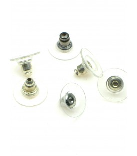 Zilverkleur oorbellen stoppertjes met plastic ring Diameter van het stoppertje is circa 1 cm. Geschikt voor oorbellen met steker Met plastic ring voor betere aansluiting.