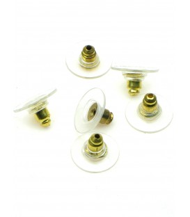 6 st. goudkleur oorbellen stoppertjes met plastic ring Diameter van het stoppertje is circa 1 cm. Geschikt voor oorbellen met steker Met plastic ring voor betere aansluiting