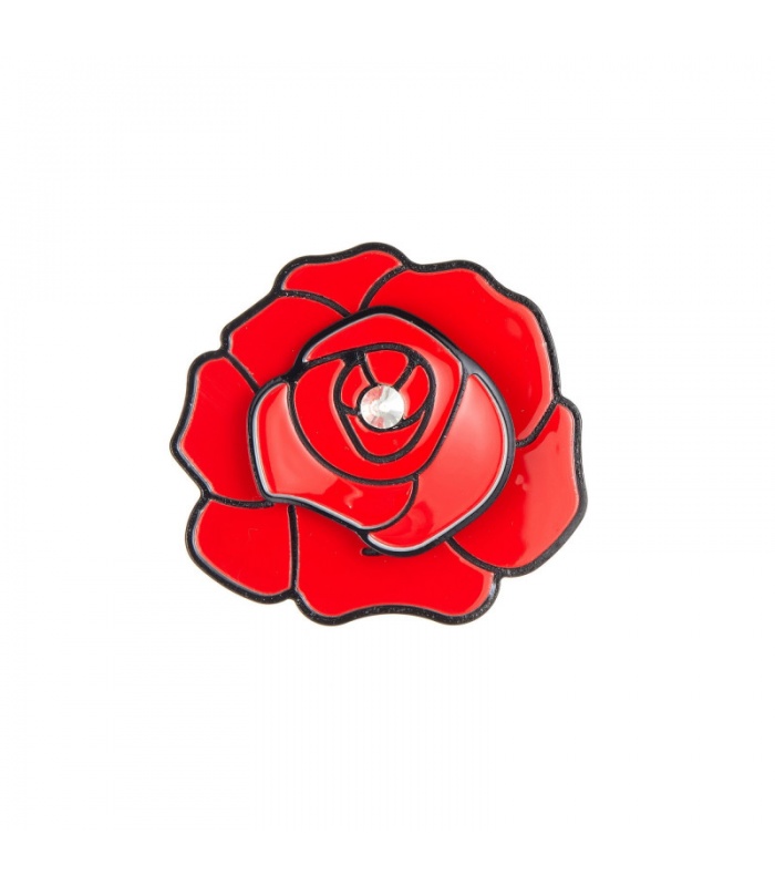 Deze prachtige rode broche in de vorm van een bloem, verfraaid met een helder glas steentje in het midden, is een subtiel en elegant accessoire. De levendige rode bloembladen stralen romantiek uit, terwijl het heldere glas steentje een sprankelend accent toevoegt. Deze broche is perfect voor formele gelegenheden, maar geeft ook een bijzondere touch aan casual outfits zoals een blouse of jas.