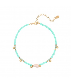 Schelpen enkelbandje. Het enkelbandje heeft een lengte van 22 cm. Het enkelbandje is verstelbaar.