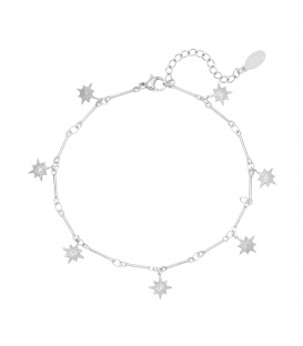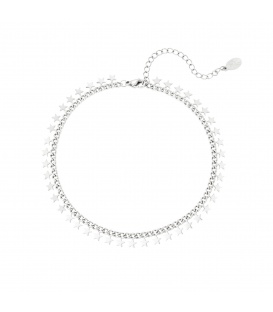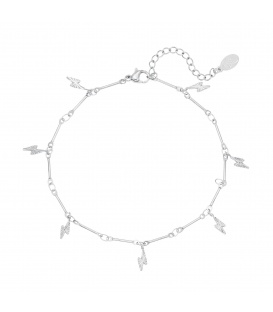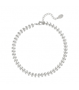 Zilvergekleurde enkelband met rechthoeken. Het enkelbandje heeft een lengte van 22 cm. Het enkelbandje is nikkelvrij. Het enkelbandje heeft een lobster sluiting. Het enkelbandje is voorzien van een verlengketting van 5 cm.