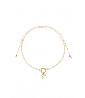 Beige gevlochten simpel enkelbandje met parels. De lengte van enkelbandje is 15 cm. De armbanden zijn nikkelvrij.