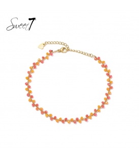 Oranje enkel bandje met kleine kraaltjes. De lengte van het enkelbandje is 22 cm De lengte van het verlengkettinkje van 5 cm.