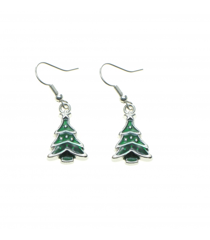 Deze zilverkleurige oorbellen zijn voorzien van een charmante groene kerstboom als hanger, perfect om je feestelijke outfit compleet te maken. Het subtiele ontwerp en de sprankelende afwerking maken ze geschikt voor zowel formele als informele gelegenheden tijdens de feestdagen.