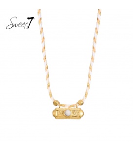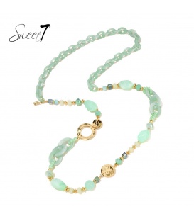 De lengte van de halsketting is 80 a 100 cm De halsketting heeft een verlengkettinkje van 5 cm