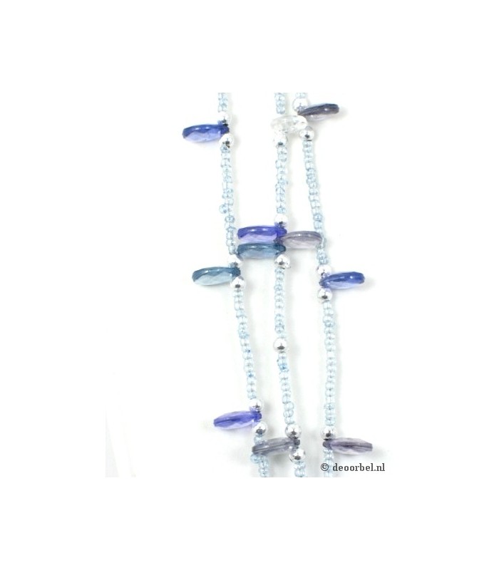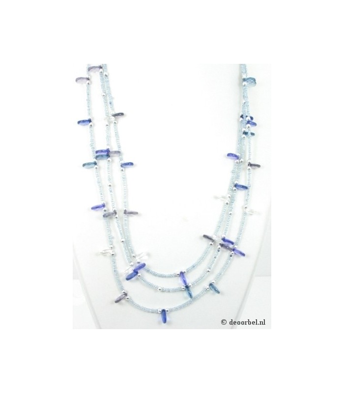 Blauwe kleine kralen halsketting. Lengte van de halsketting isᅠ50 cm met een verlengkettinkje van 7 cm.