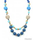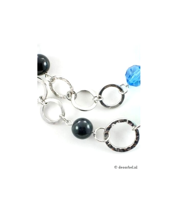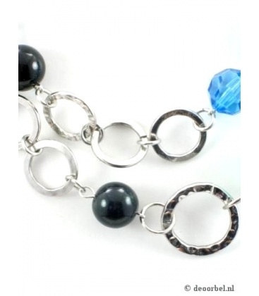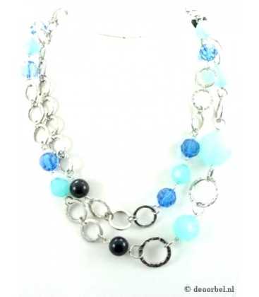 Blauwe kralen schakelhalsketting. Lengte van de halsketting is ᅠ43 cm met een verlengkettinkje van ᅠ8 cm.