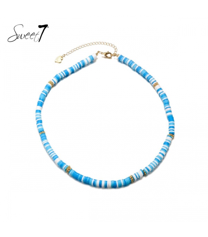 Dat is de speelse rij blauwe en witte kralen die samen een zomerse dames ketting vormen. De halsketting oogt licht en geeft elke outfit een frisse, vrolijke uitstraling met een subtiel kleuraccent.