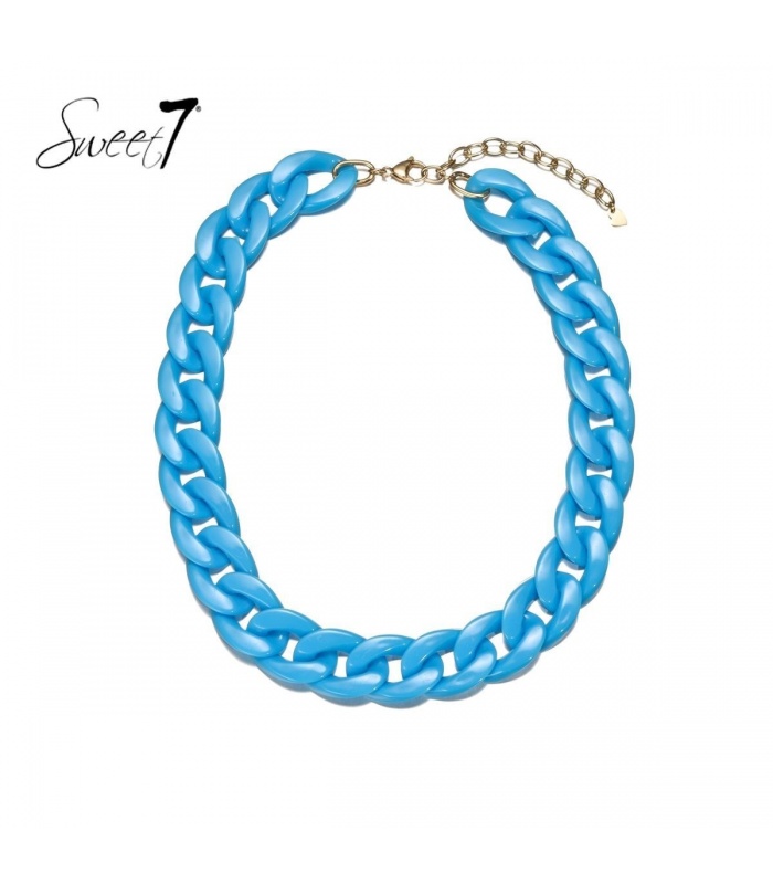 Blauwe grove schakel halsketting.