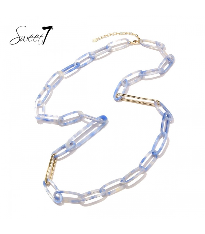 Deze prachtige blauwe lange halsketting met goudkleurige elementen is een absolute blikvanger voor elke gelegenheid. De blauwe tinten van de schakels geven een vleugje elegantie, terwijl de goudkleurige elementen een vleugje glamour toevoegen. Gemaakt van hoogwaardige materialen, is deze ketting perfect om je outfit compleet te maken en je persoonlijke stijl te accentueren.