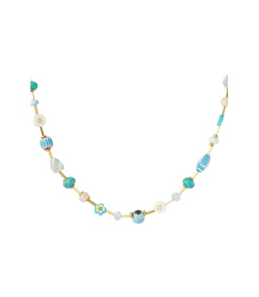 Deze schitterende goudkleurige halsketting is een echte eyecatcher! De ketting is voorzien van prachtige blauwe kralen die subtiel glinsteren bij elke beweging. De combinatie van de warme goudtint en het blauw zorgt voor een elegante en tijdloze uitstraling.