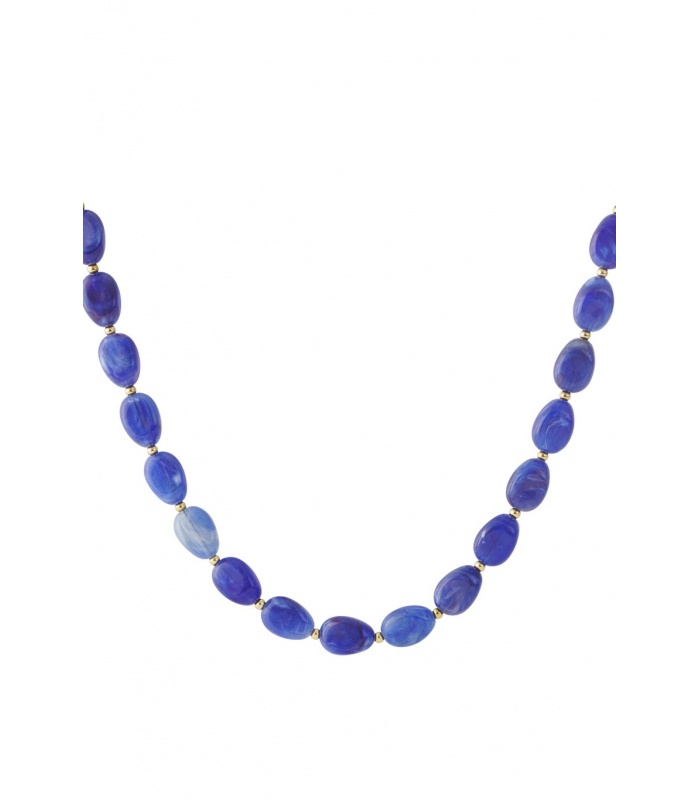 Op zoek naar een halsketting die elke outfit direct opwaardeert? Deze ketting met kobaltblauwe kralen en goudkleurige accenten is een echte blikvanger. De diepe, gemarmerde schakeringen geven een luxe uitstraling en passen perfect binnen de kleurrijke sieradentrend.