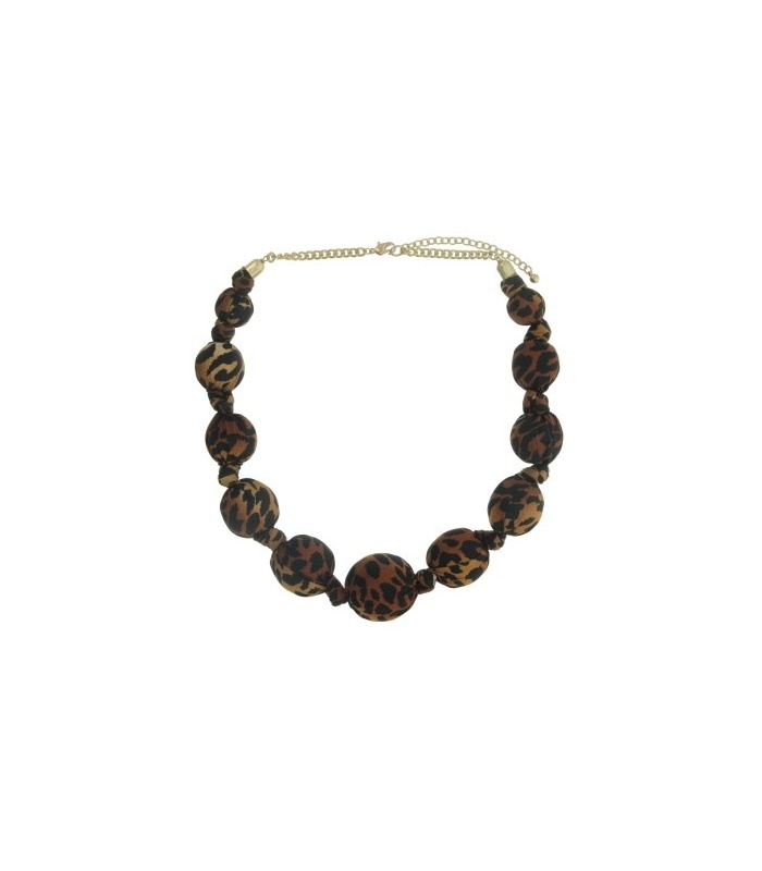 Hoe geef je een basic outfit direct meer lef? Deze halsketting met grote kralen in panterprint doet precies dat. De ronde vormen en warme tinten zorgen voor een krachtige uitstraling, perfect voor wie durft. De ketting sluit met een goudkleurige schakel en verstelbare sluiting.