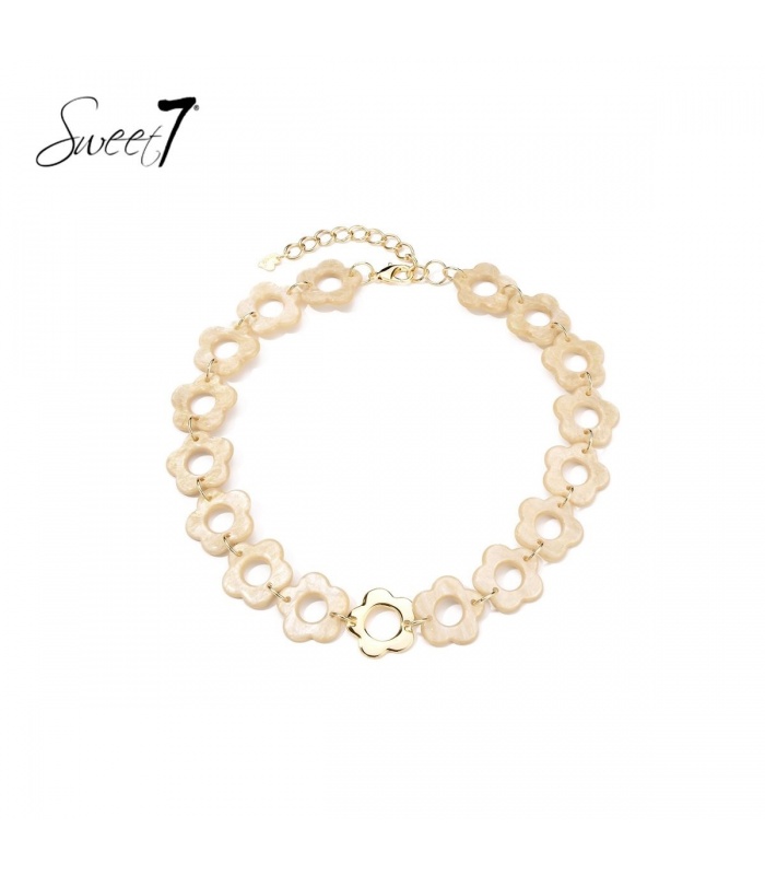 Beige korte halsketting met goudkleurige element.