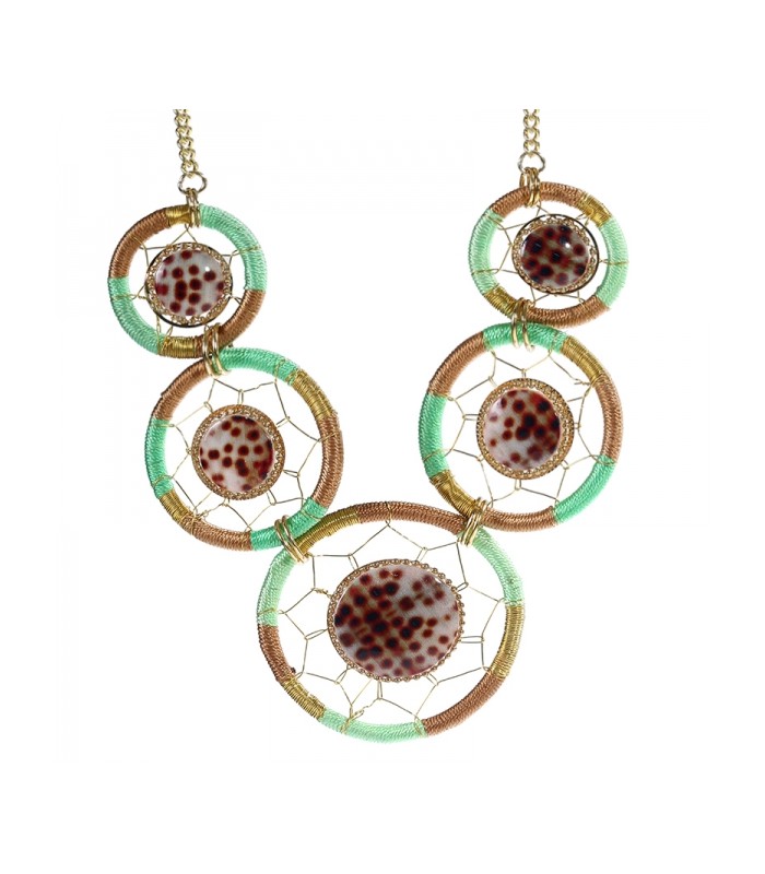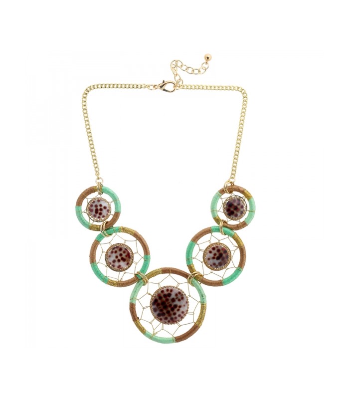 Bruin,groene halsketting met ronde...