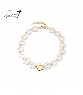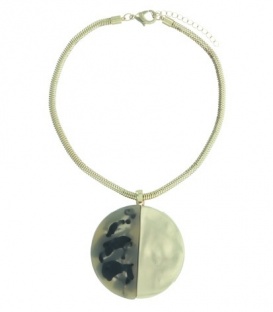 Creme korte halsketting met goudkleurige element. De lengte van de halsketting is circa 45 a 50 cm. De halsketting is heeft een verlengkettinkje van circa 5 cm