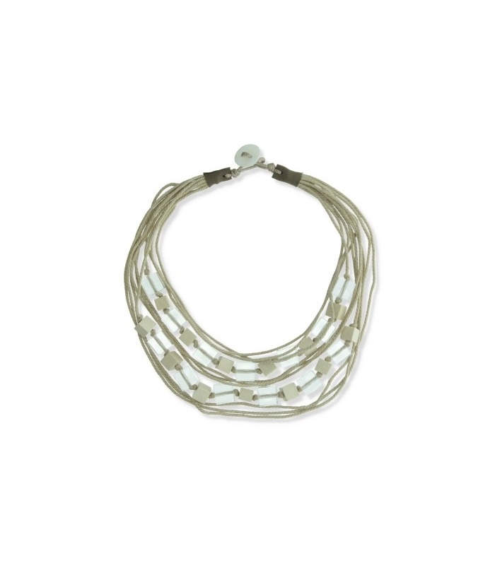 Beige koord halsketting van vierkante kralen en meerdere strengen
