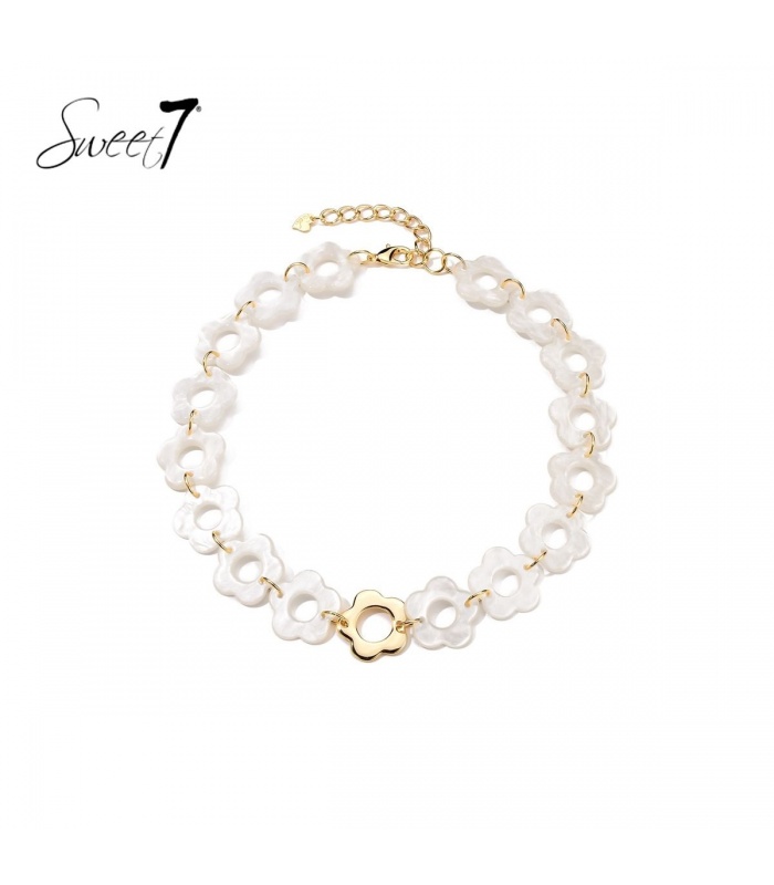 Chique creme korte halsketting, verrijkt met schitterende goudkleurige element. Dit unieke sieraad straalt een subtiele luxe uit, perfect voor elke gelegenheid. Het combineert de tijdloze elegantie van creme met de prachtige glans van goud, waardoor het een must-have is voor elke fashionista.
