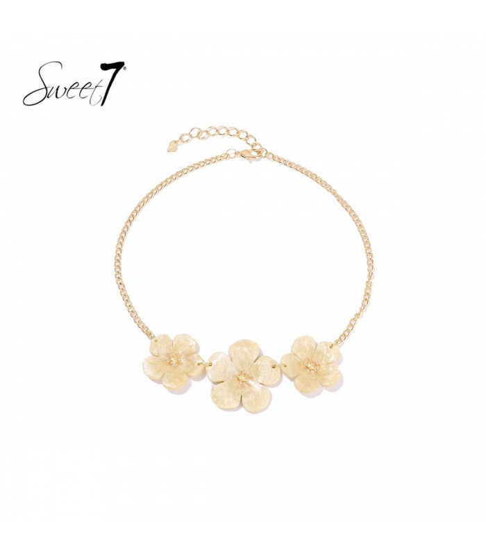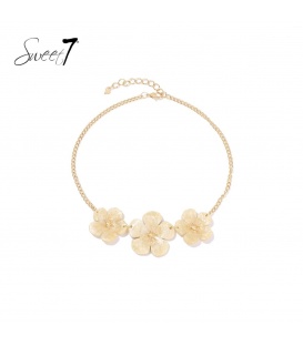 De delicate bloemen geven een sierlijke en vrouwelijke uitstraling, terwijl de goudkleurige ketting zorgen voor een luxueus contrast. Deze ketting is ideaal voor wie houdt van natuurlijke en stijlvolle details.