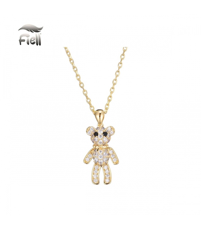 Deze speelse en toch elegante goudkleurige halsketting met een beer hanger vol glinsterende strass steentjes is een echte blikvanger. De schattige beer vorm is volledig bedekt met fonkelende steentjes, waardoor hij een perfecte mix is van speelsheid en glamour.