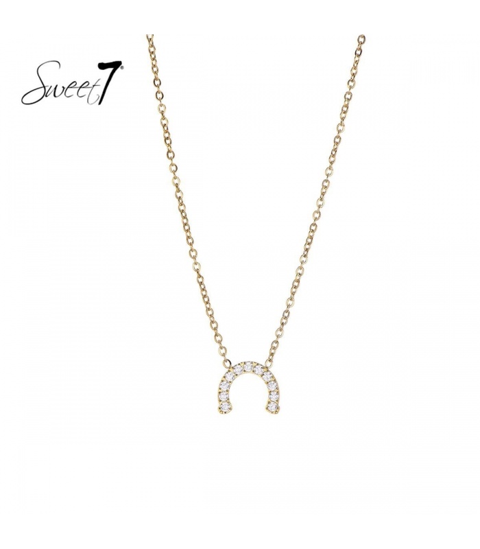 Goudkleurige halsketting met hoefijzer van zirkoonsteentjes.