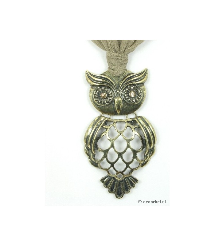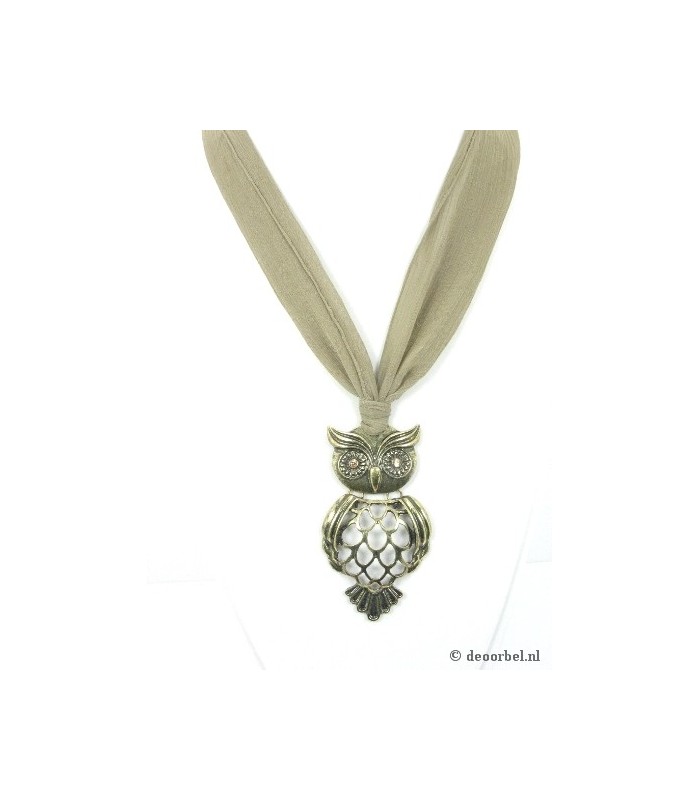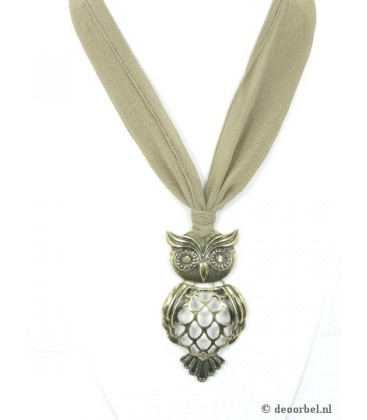 Stoffen halsketting met hanger in de vorm van een uiltje