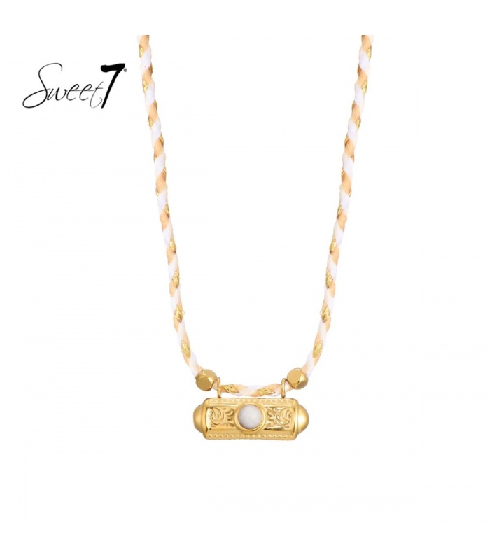Halsketting met bedel in boho stijl is een must-have voor liefhebbers van een vrije, natuurlijke uitstraling. De goudkleurige ketting met bedel voegt een vleugje elegantie toe aan je outfit en is perfect voor zowel casual als chique gelegenheden. Combineer met andere sieraden voor een gelaagde look.