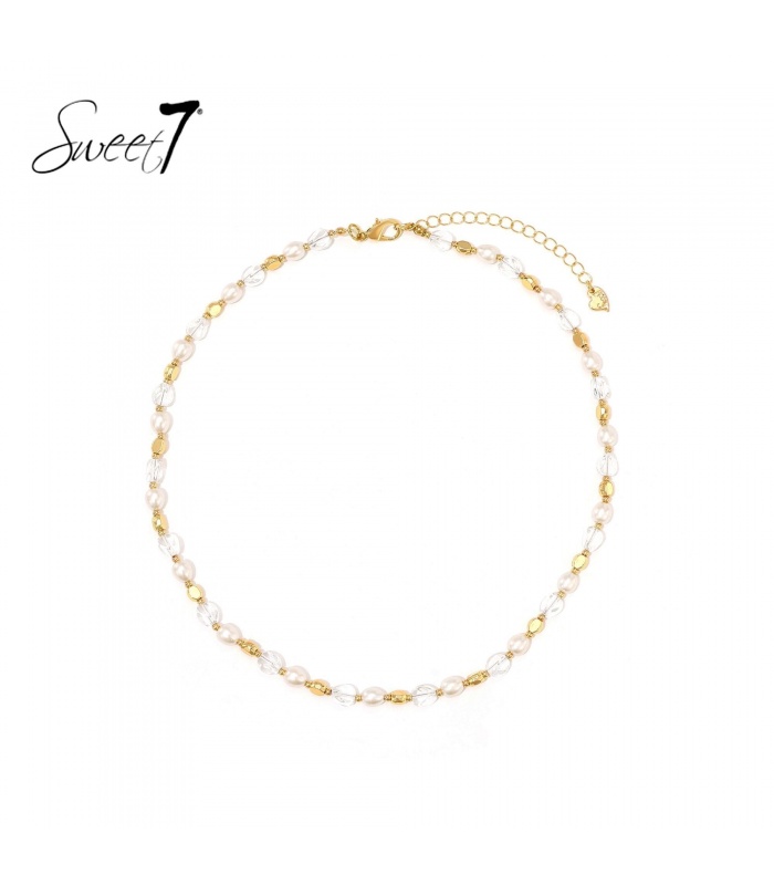 Wat maakt deze halsketting zo bijzonder? Dat is de mix van parels en transparante kralen die zacht glanzen. Deze halsketting voelt licht en elegant. Perfect als parel ketting of gouden halsketting voor een subtiele, vrouwelijke uitstraling.